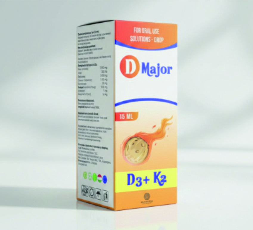D-Major - daxilə qəbul üçün məhlul - damcı 15 ml şüşə flakonda, içlik vərəqəsi ilə birgə karton qutuya yerləşdirilir.
